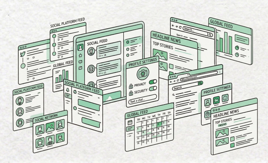 由於社群平台的主要目標是吸引注意、延長停留時間,所以會優先推播你喜歡的、或是容易挑起情緒的內容。在 Kono,你可以從全球的專業媒體中,主動選擇閱讀對象,而不是被動地被演算法餵養。